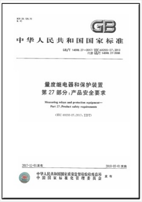 2017年11月1日國家標(biāo)準(zhǔn)化管理委員會發(fā)布了“量度繼電器和保護(hù)裝置第27部分:產(chǎn)品安全要求”國家標(biāo)準(zhǔn),這是我公司參與制定的第二部相關(guān)技術(shù)與產(chǎn)品的國家標(biāo)準(zhǔn)。