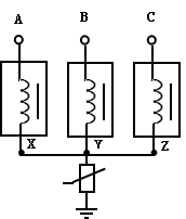 圖3 三只單相P.T接成中性點(diǎn)后接地安裝消諧器的改接方法